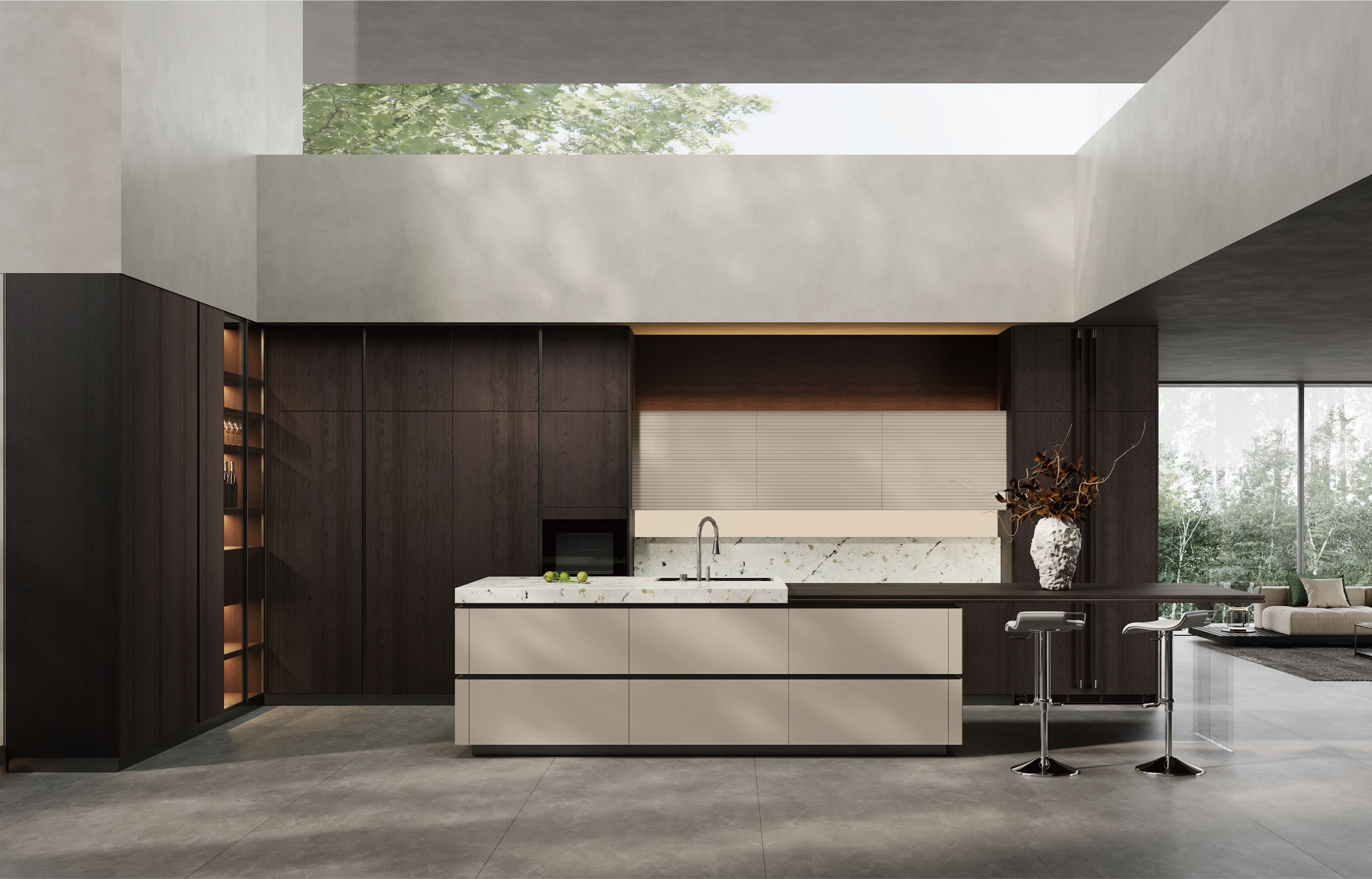 通过PA真人厨柜量体裁柜,定制出适合主厨下厨的烹饪区和洗涤区的舒适高度。